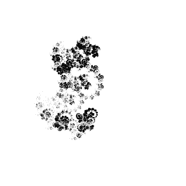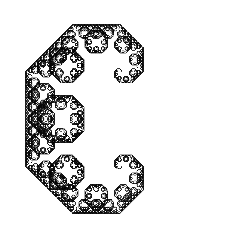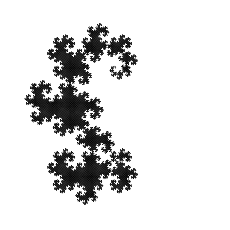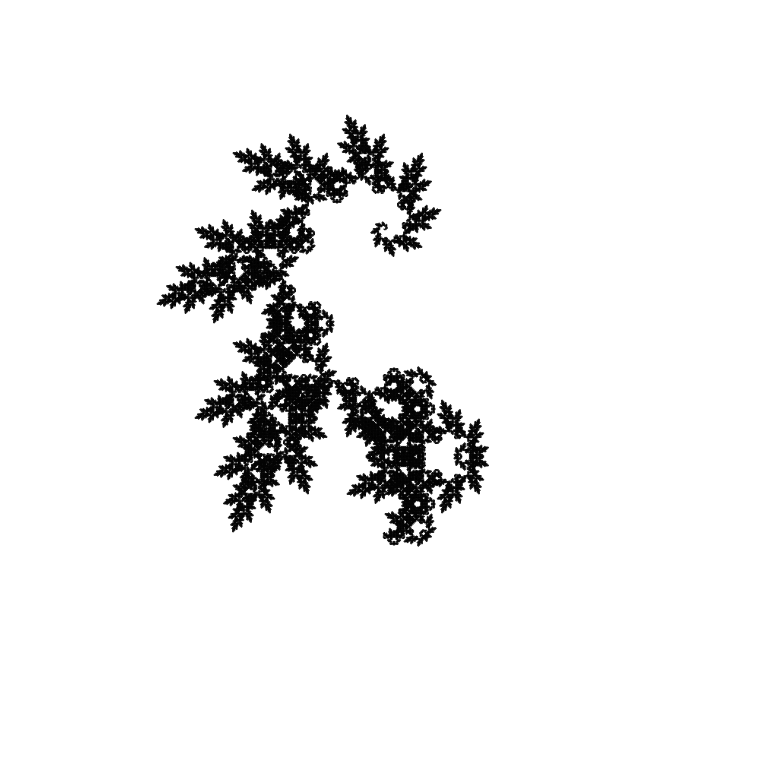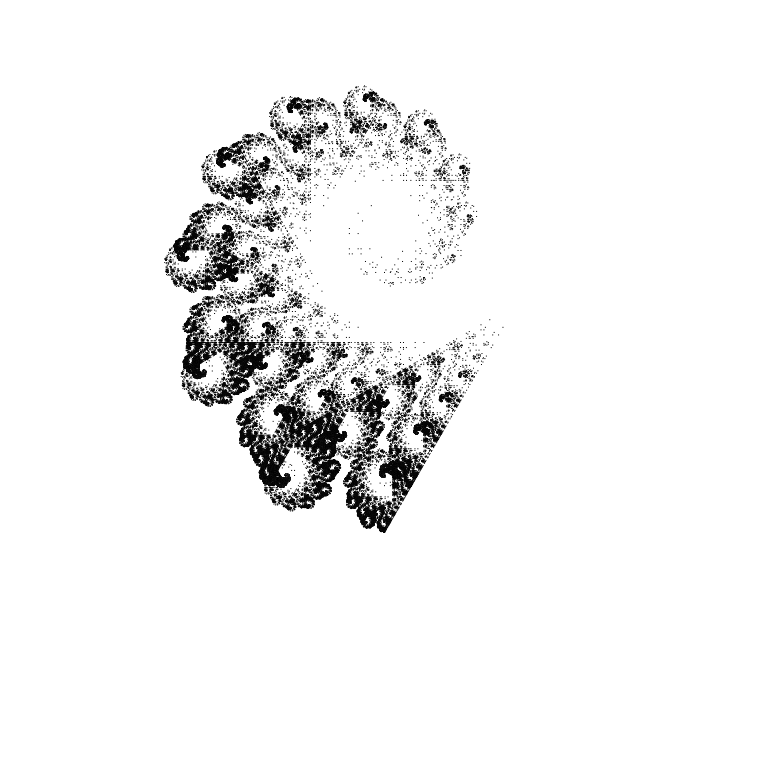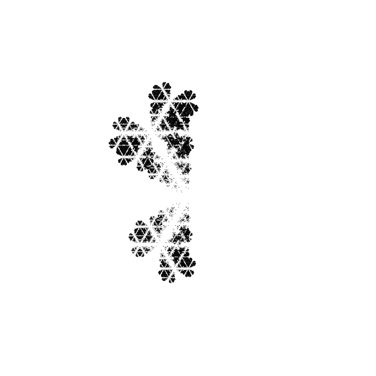 From now on we will draw only dots, without connecting them with lines… purely for aesthetic reasons. Fractal [30,-30,-60,60] drawn with lines and dots: