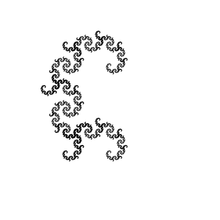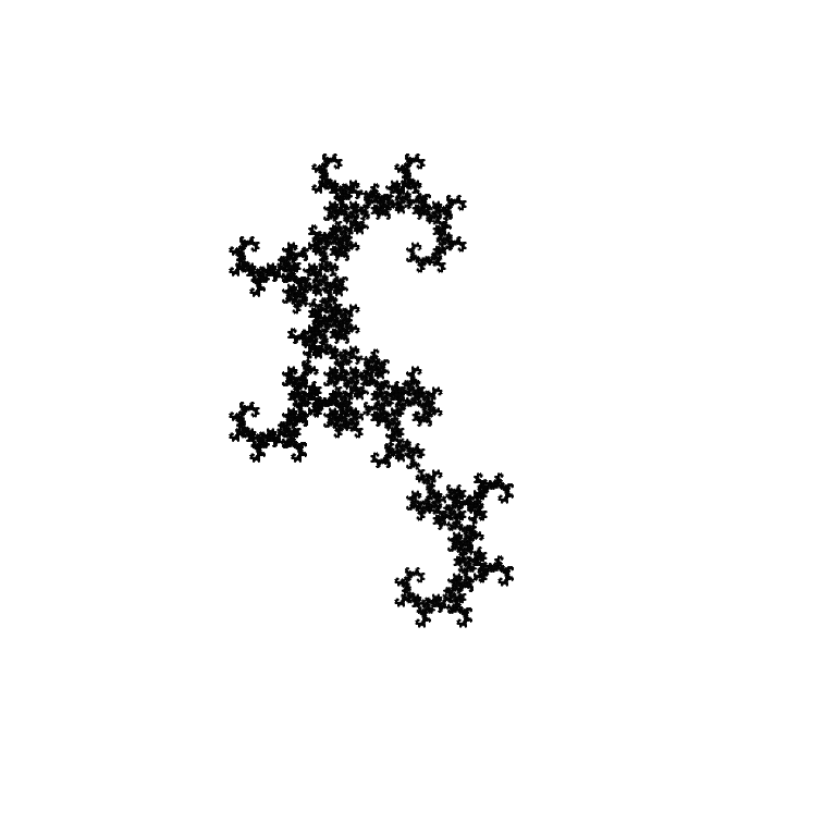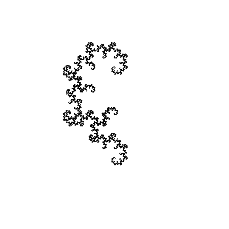 By slightly modifying the above code, we can draw another well-known fractal curve - the Harter-Haytheway Dragon. To do this, starting from the second iteration, we will alternate angles of 45° and -45°