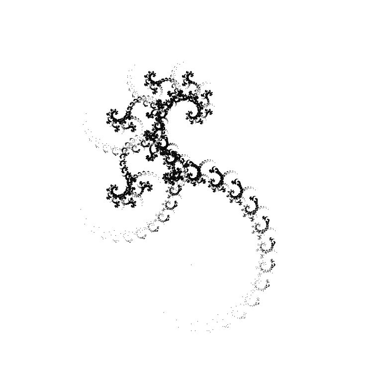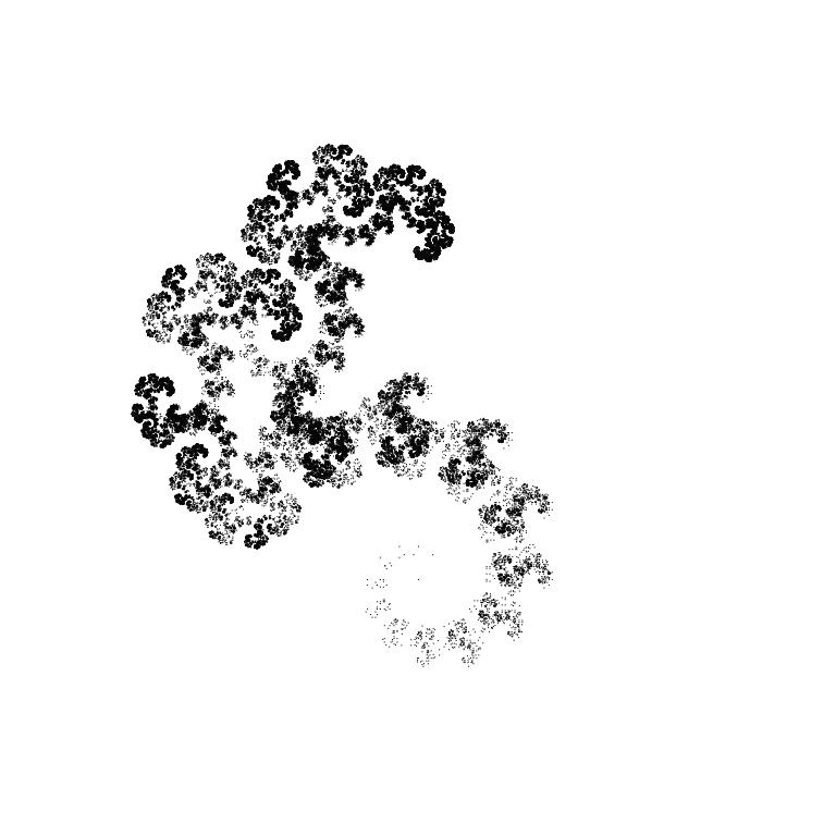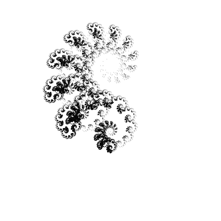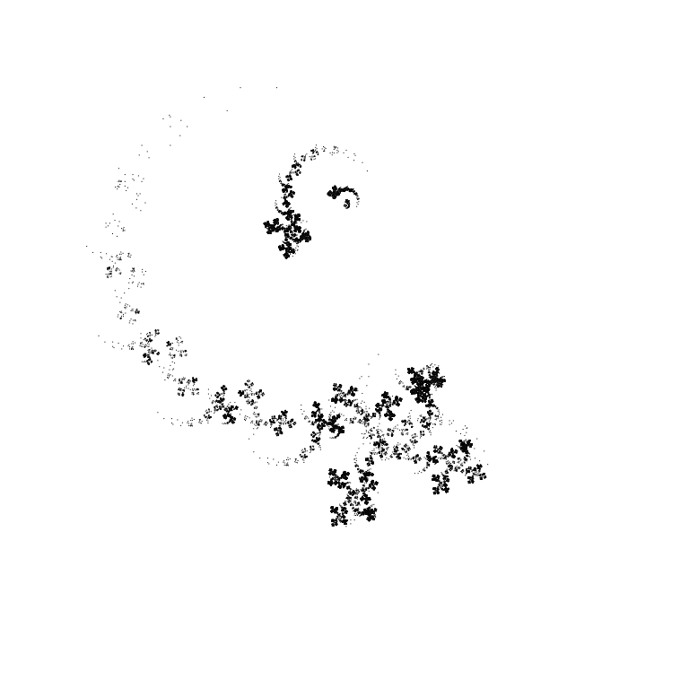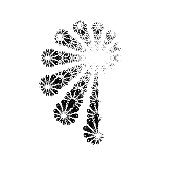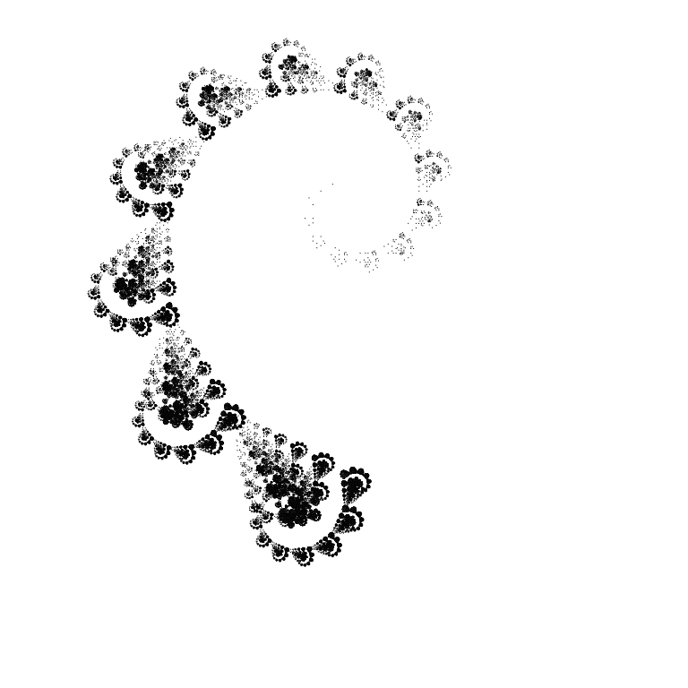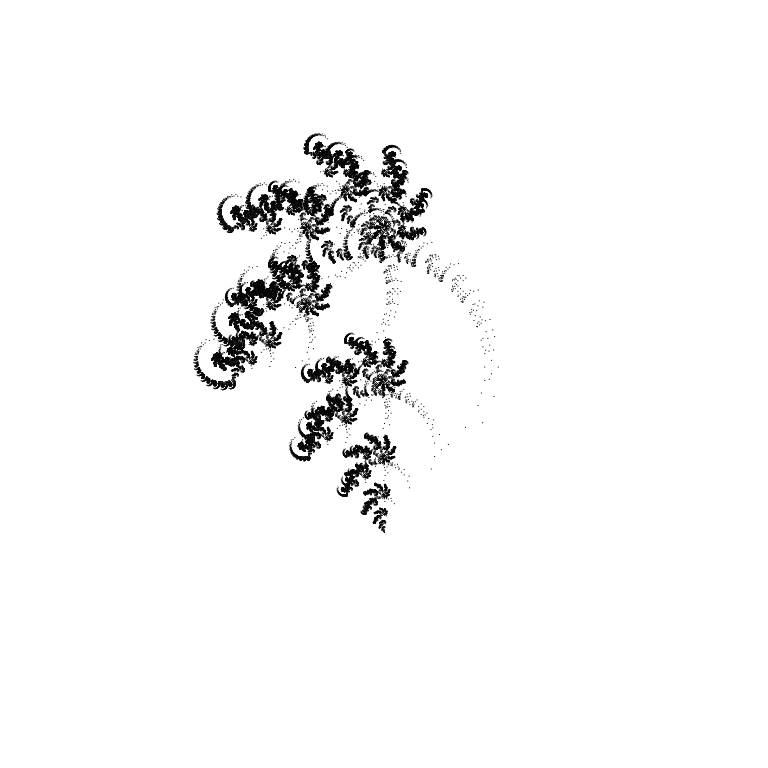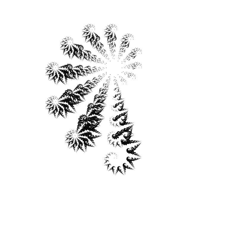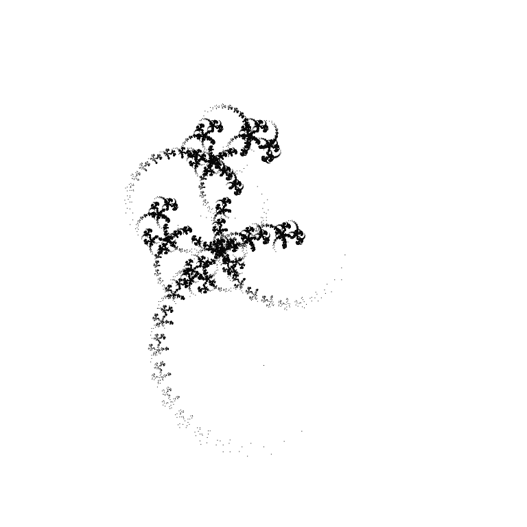 We have changed our function just a little bit, adding one more angle to it, and the fractal has changed beyond recognition! In dynamics (we change the second angle in 5° increments):