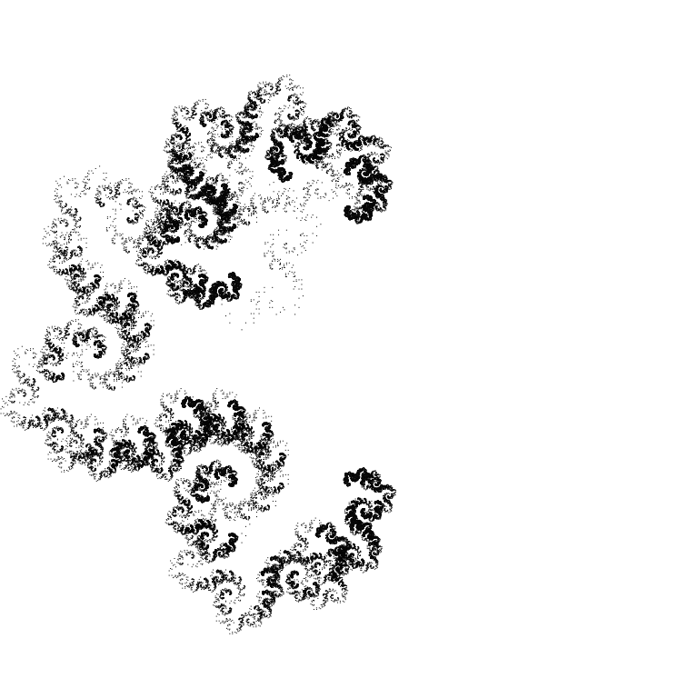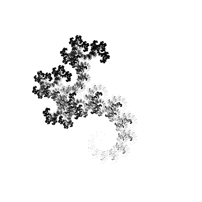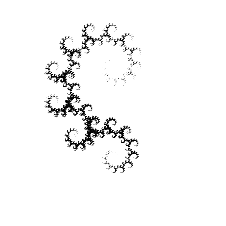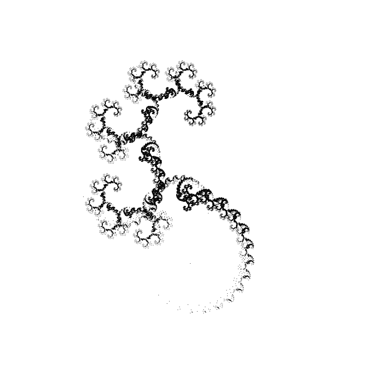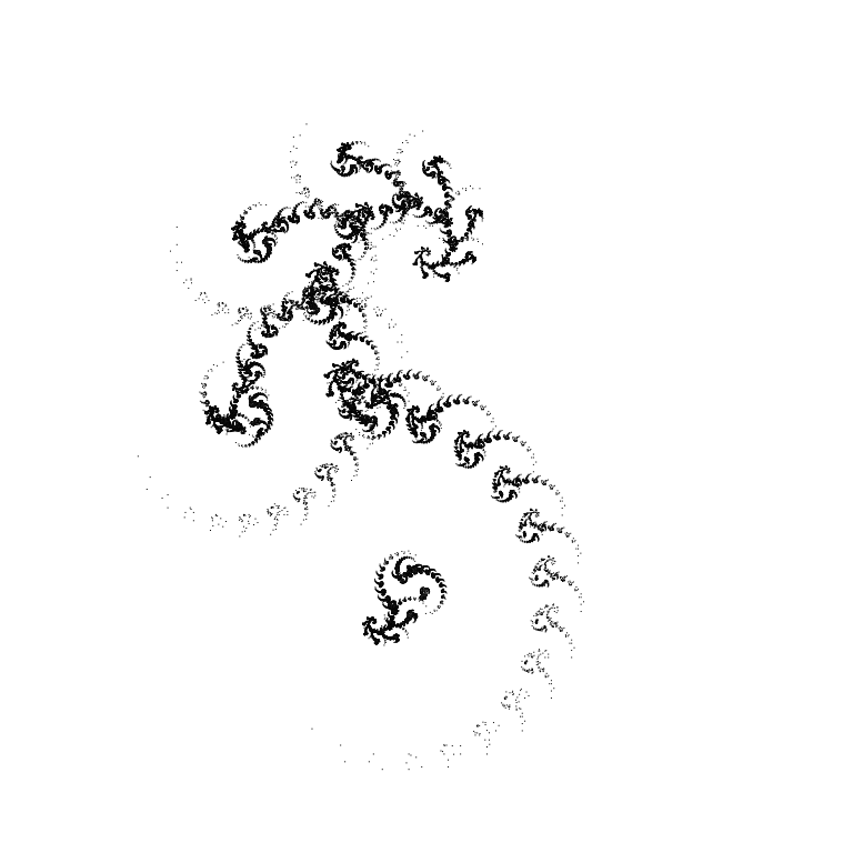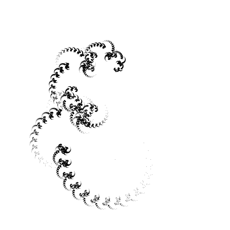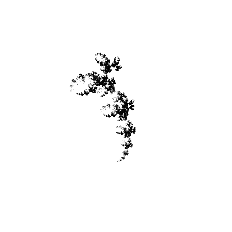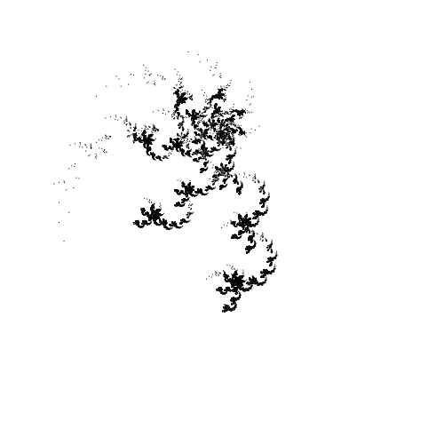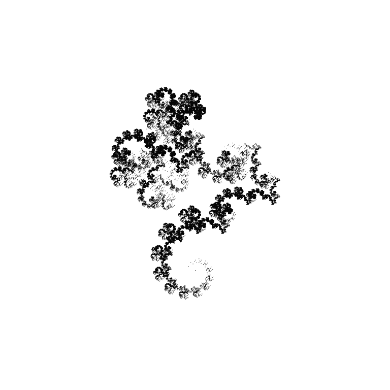 We have changed our function just a little bit, adding one more angle to it, and the fractal has changed beyond recognition! In dynamics (we change the second angle in 5° increments):