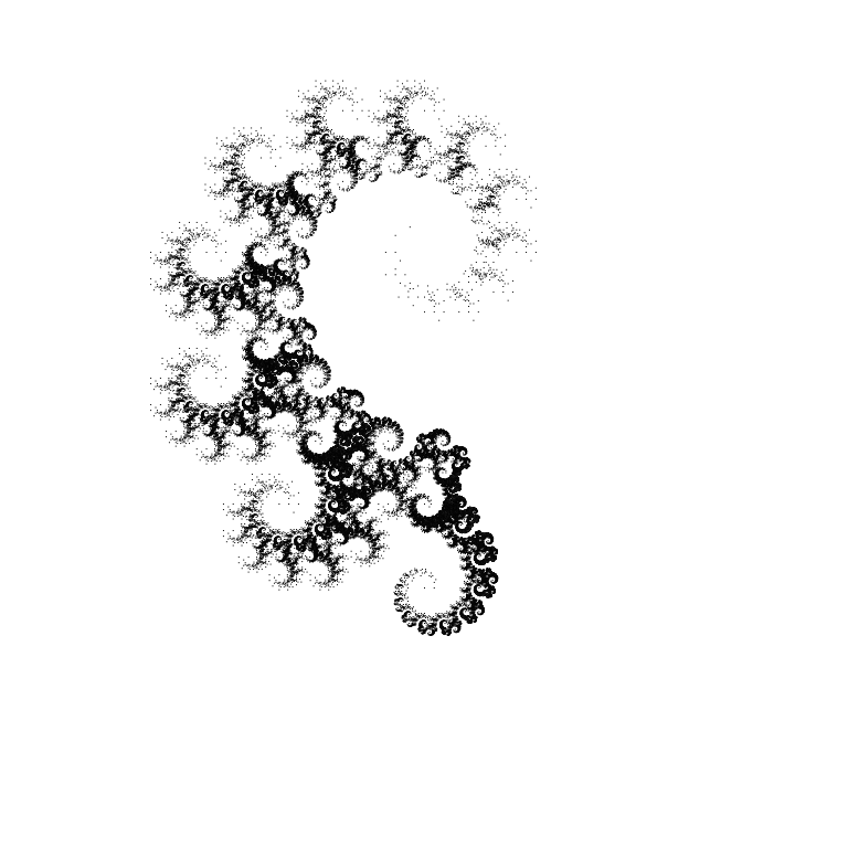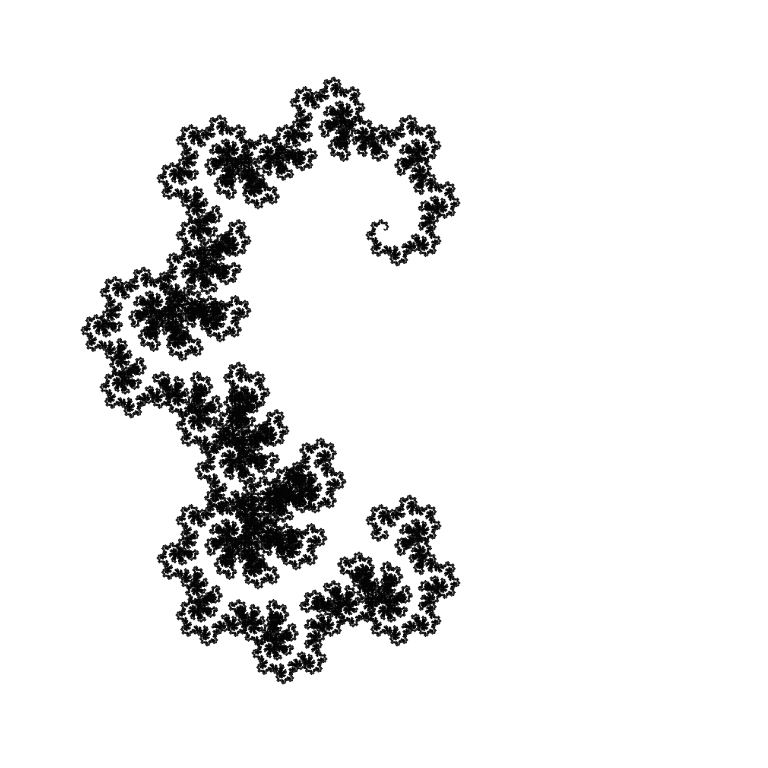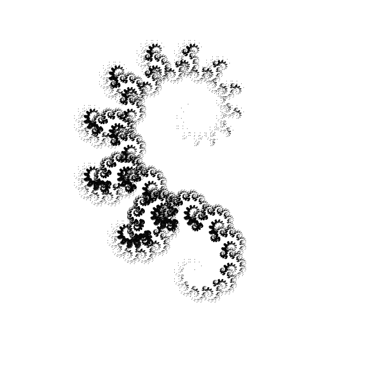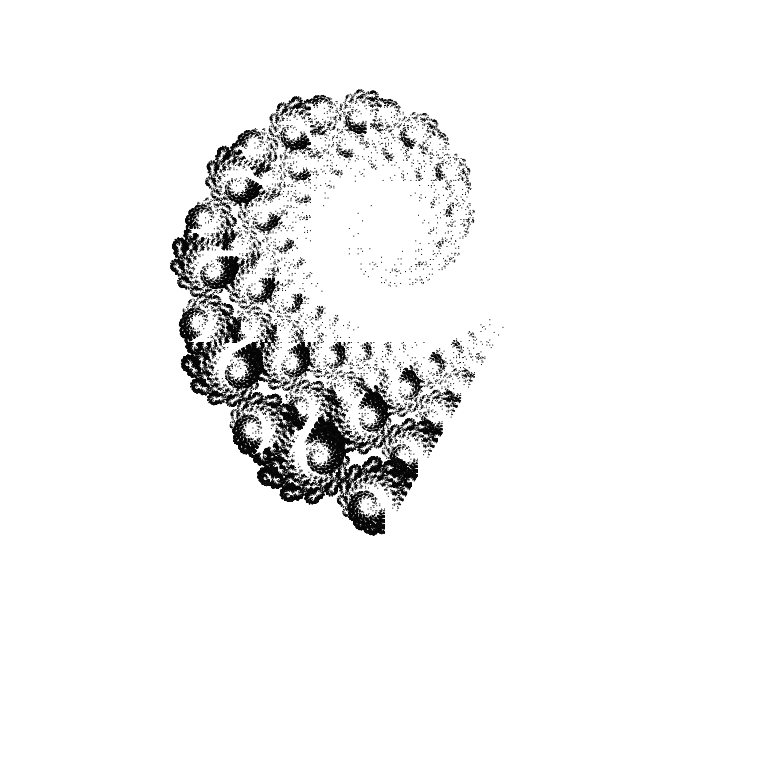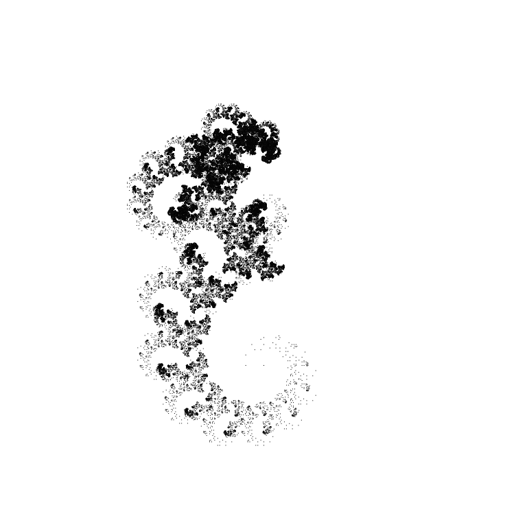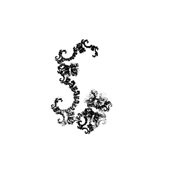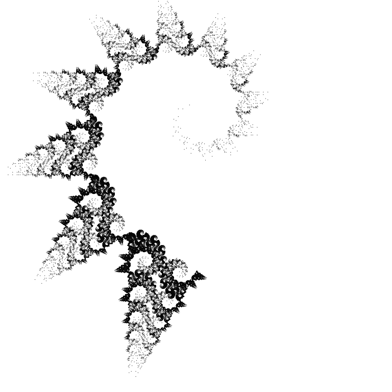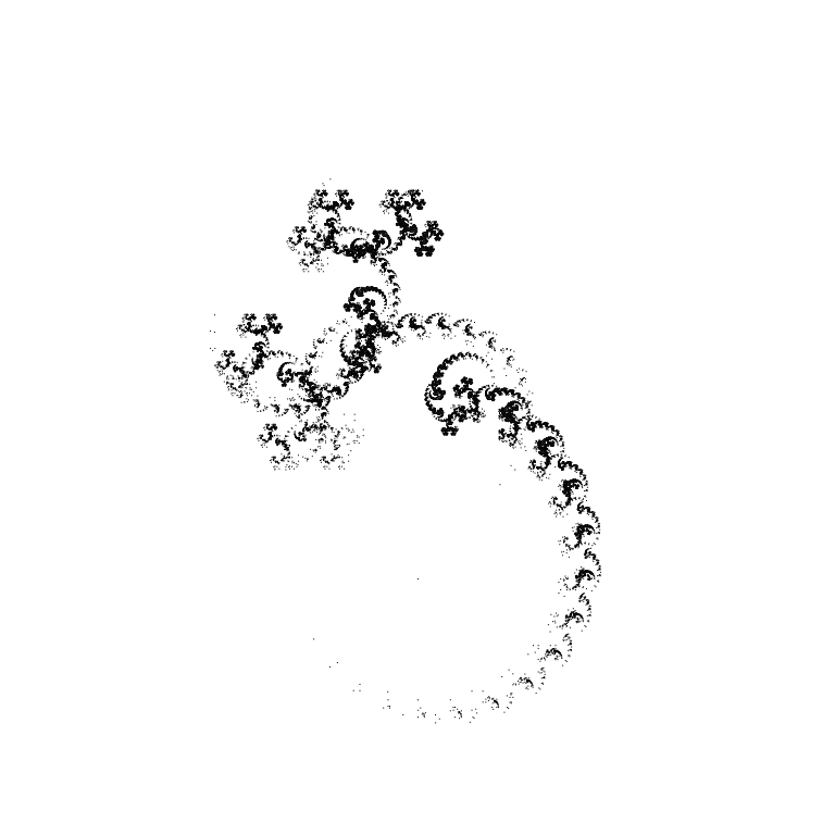 We have changed our function just a little bit, adding one more angle to it, and the fractal has changed beyond recognition! In dynamics (we change the second angle in 5° increments):