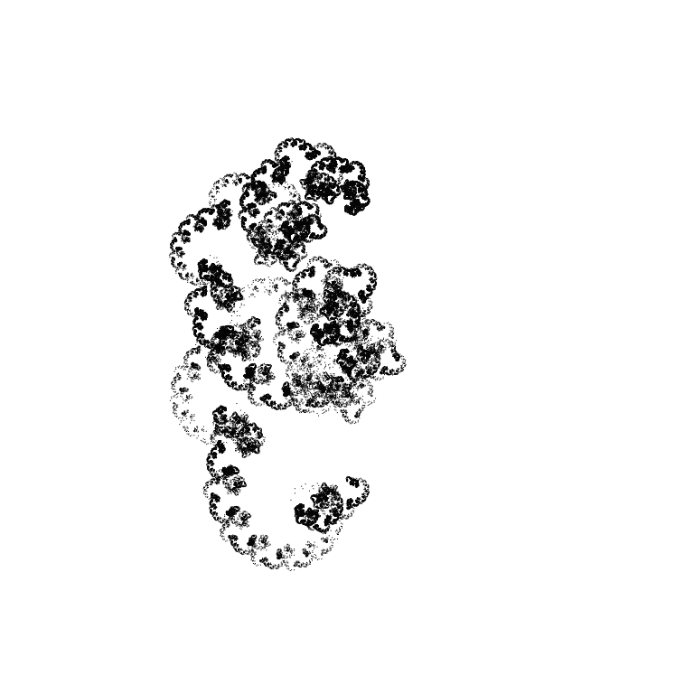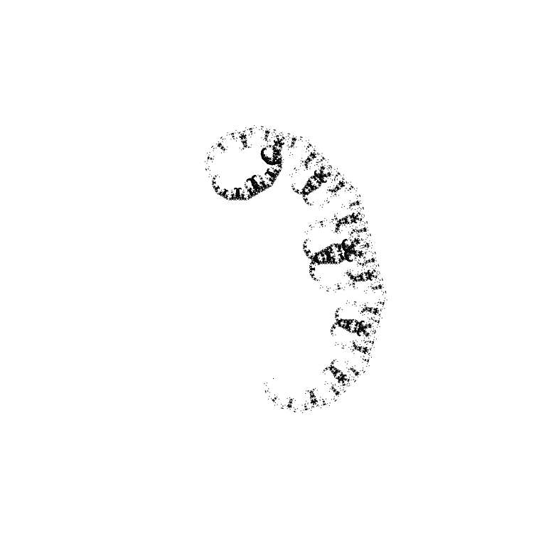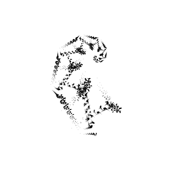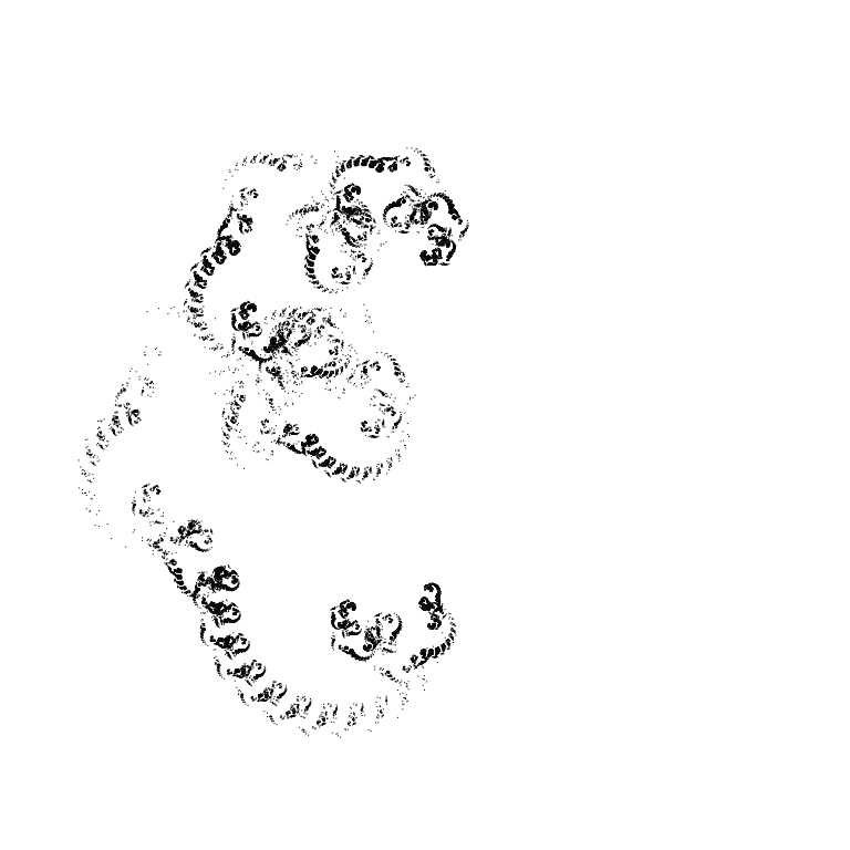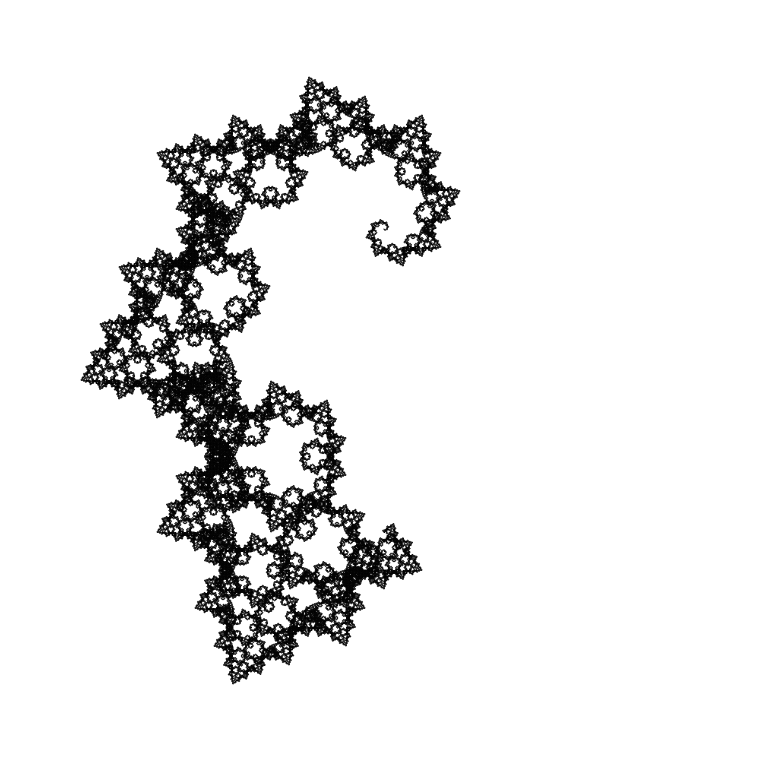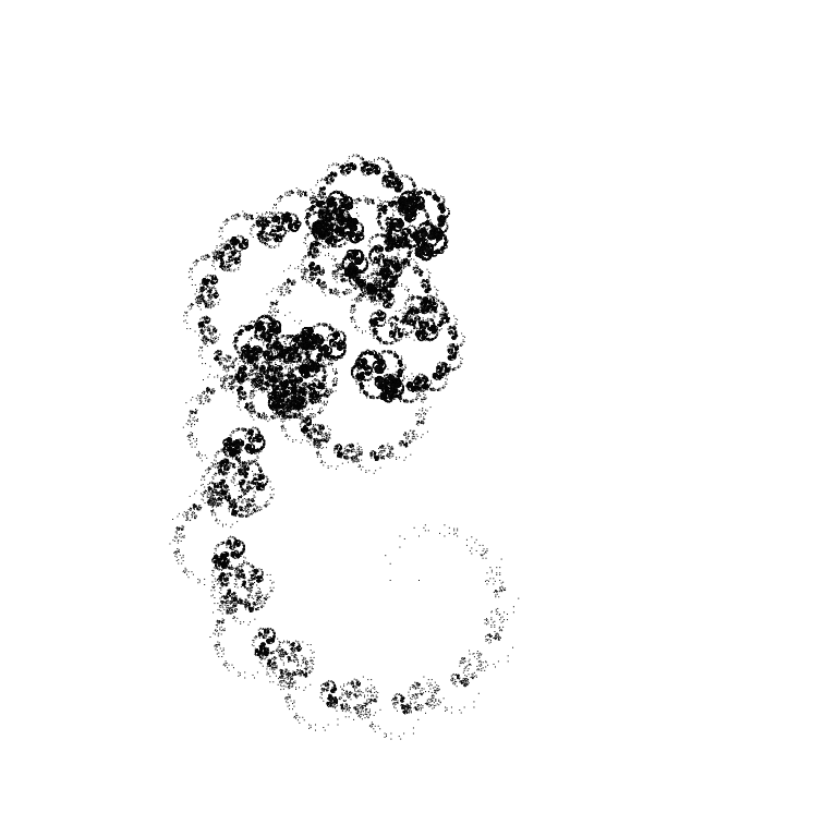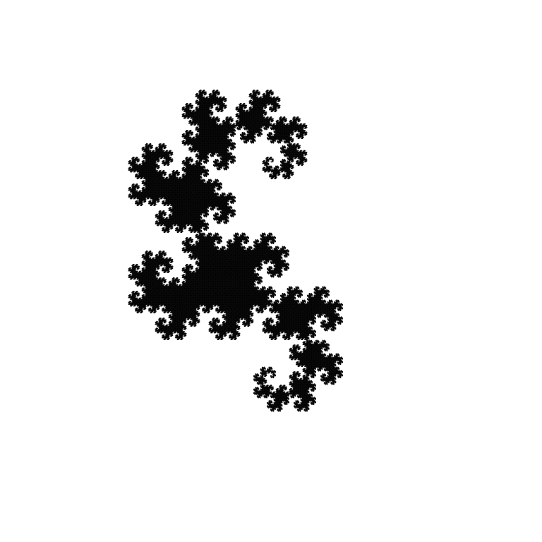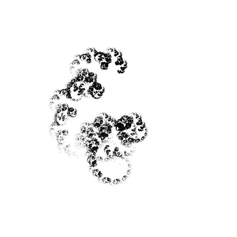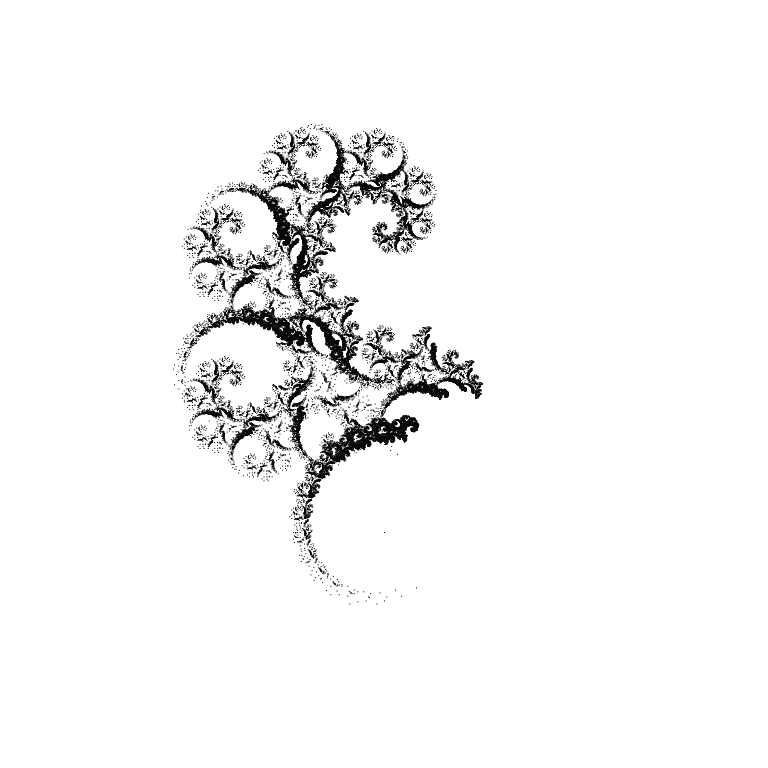 We have changed our function just a little bit, adding one more angle to it, and the fractal has changed beyond recognition! In dynamics (we change the second angle in 5° increments):